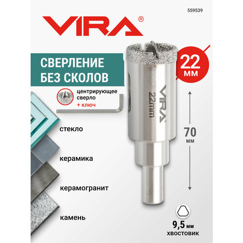Коронка алмазная по керамике 22 мм трехгранный хвостовик VIRA