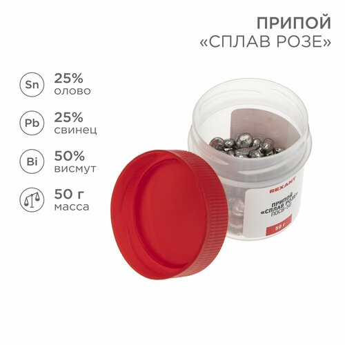 Припой "Сплав Розе" (олово 25%, свинец 25% и висмут 50%), 50 г
