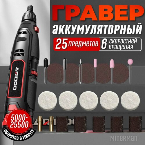 Гравер аккамуляторный мини дрель шлифмашинка, набор аксессуаров 25 шт для сверления, полирования, шлифования, резьбы.