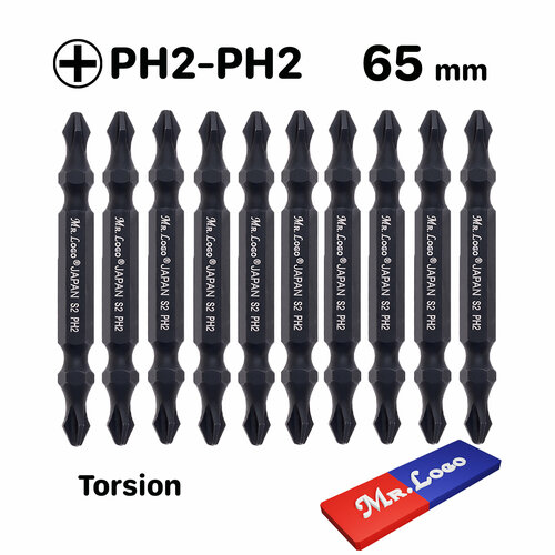 Биты для шуруповерта двусторонние Торсионные магнитные PH2 x 65 мм Mr.Logo Сталь - Japan S2, 10 шт