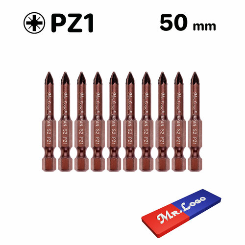 Биты для шуруповерта магнитные PZ1 x 50 мм Mr.Logo Сталь - Japan S2, 10 шт