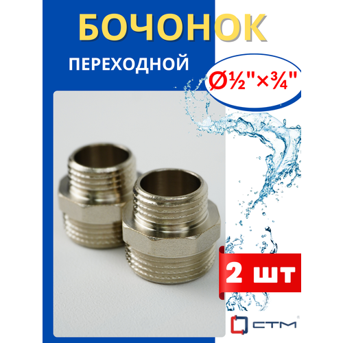 Бочонок (ниппель) переходной 1/2"х3/4" CTM - резьбовой фитинг с наружной резьбой для соединения элементов трубопровода разного диам...