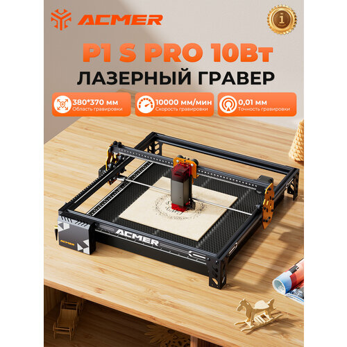 Лазерный гравер ACMER P1 S Pro 10 Вт, рабочая зона 380×370 мм, скорость 10000 мм/мин, синий лазерный резак с ЧПУ