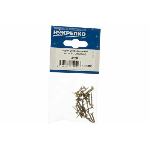 Шуруп универсальный Накрепко, 3х20 мм, из стали, цвет золотой, оцинкованный, 30 шт в наборе