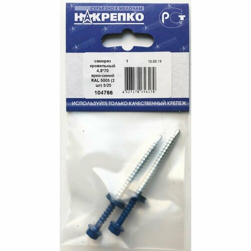 Кровельный саморез накрепко 4,8х70 ярко-синий RAL 5005, 2 шт. 104766
