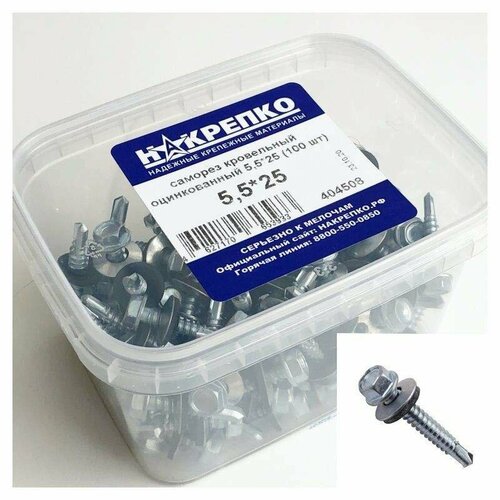 Саморез кровельный оцинкованный 5,5*25 (100 шт EC) накрепко 404508 (арт. 457552)