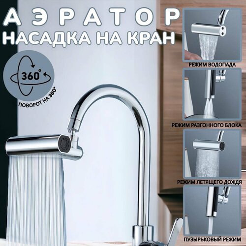 Насадка на кран, аэратор для смесителя, 4 режима, режима водопада, водосберегающая насадка
