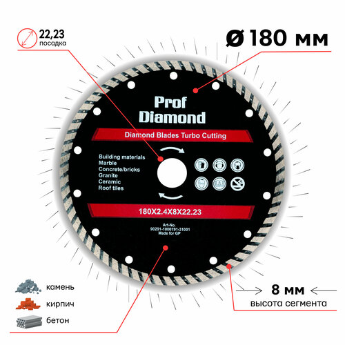 Диск алмазный турбо Prof Diamond 180 x 2,4 x 8 х 22.2 мм TORGWIN S30325