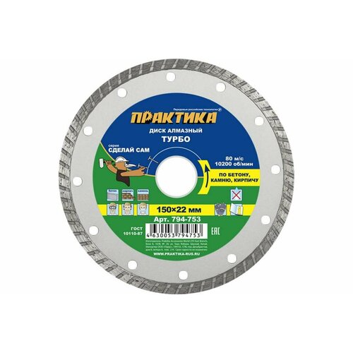 Диск алмазный турбированный Сделай Сам (150x22 мм) ПРАКТИКА 794-753