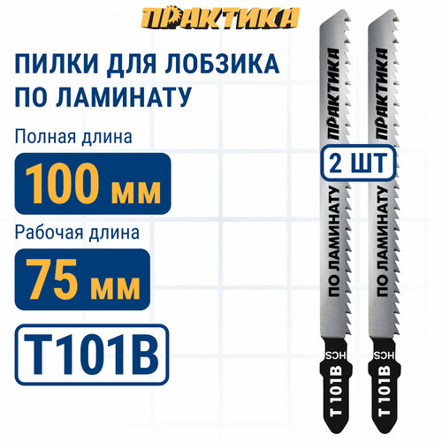 Пилки для лобзика по ламинату ПРАКТИКА дереву, ДСП, тип T101B 100 х 75 мм, чистый рез, HCS