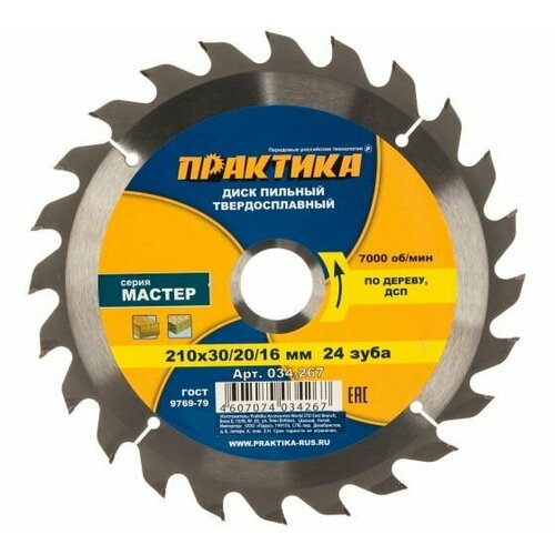 Диск пильный по дереву (210х30/20/16 мм; Z24) ПРАКТИКА 034-267