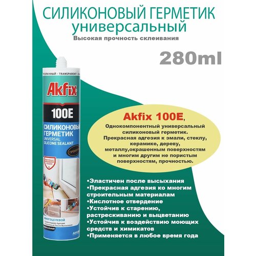 Герметик Akfix 100E, универсальный, силиконовый, прозрачный, 280 мл 3514882