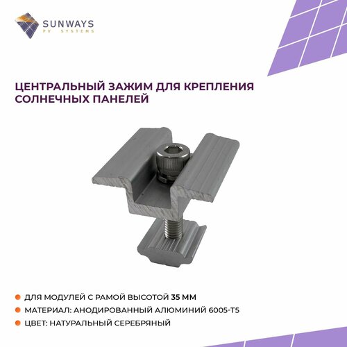 Цены на Центральный зажим для крепления солнечных панелей 30мм, Sunways, 1 шт. натуральный серебряный в г. Воронеж