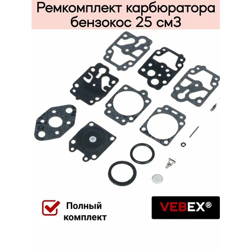Ремкомплект карбюратора бензокосы, триммера, мотокосы 25 см3 VEBEX