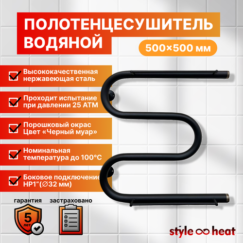 Полотенцесушитель, водяной, 50 см х 50 см, с полками, форма М-образная