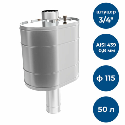 Бак для банной печи на трубе под каменку 50л из стали AISI 439/0,8мм, D 115
