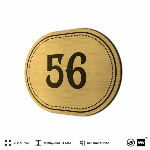 Номерок на дверь квартиры 56, для кабинета, офиса, шильдик 9 х 7 см, золотистый, Айдентика Технолоджи