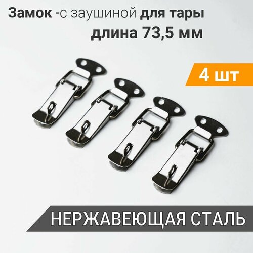 Замок-защёлка "Лягушка" L-44 с проушиной (4 шт), с пружиной нержавеющий замок для тары, ящиков, полированный