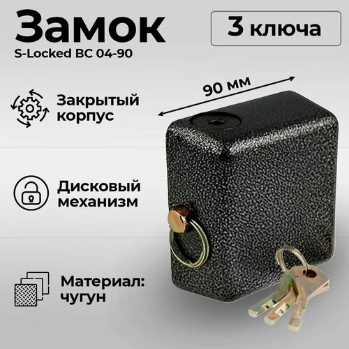 Замок навесной со скрытой дужкой S-Locked ВС 04-90 , 90мм, замок накладной, гаражный, черепашка
