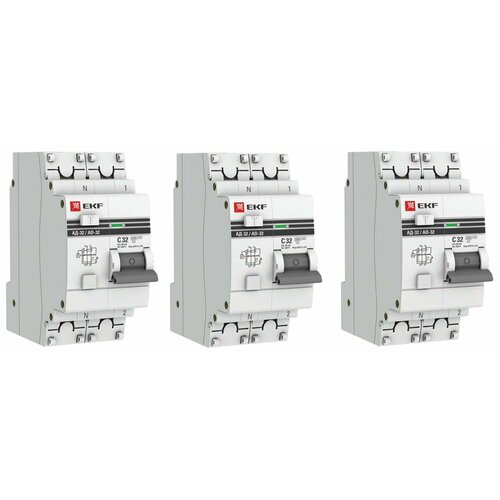 Дифференциальный автомат АД-32 1P+N 32А/30мА (хар. C, AC, электронный, защита 270В) 4,5кА EKF PROxima 3 штуки