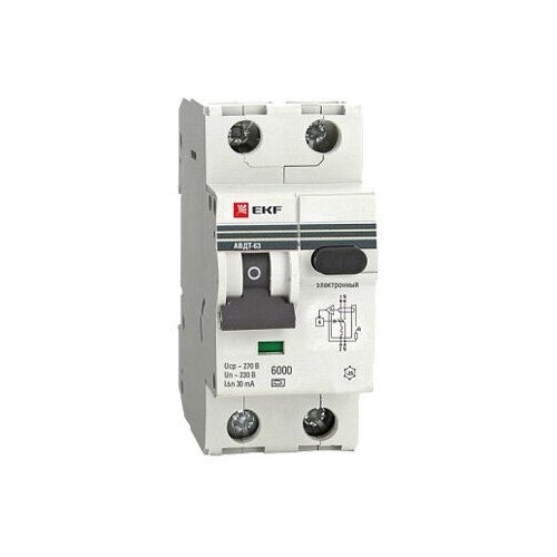 Дифавтомат EKF PROXIMA АВДТ-63N 6А (C) 30мА, тип AC, 1P+N (двухполюсный), 6кА, электронный