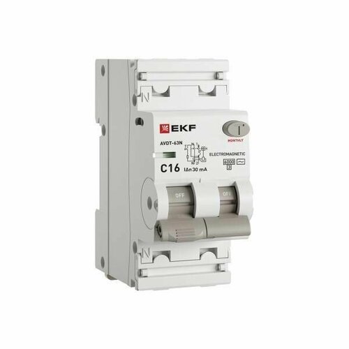 Дифавтомат EKF PROXIMA АВДТ-63N 16А (C) 10мА, тип AC, 1P+N (двухполюсный), 6кА, электронный