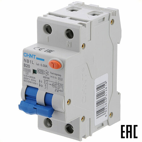 Дифф. автомат NB1L 203100 (тип АС) 20А-30мА 230В 1P+N 2мод. 10кА характеристика B CHINT