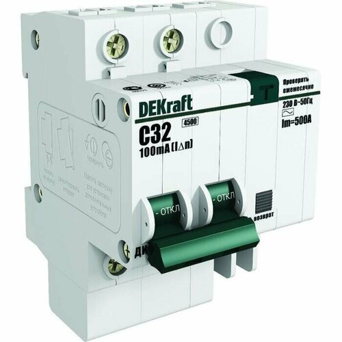 Дифференциальный автомат DEKraft ДИФ-103 2П 30 мА C 4.5 кА AC электронный 20 А 30 мА