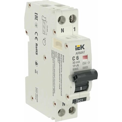 ARMAT Автоматический выключатель дифференциального тока B06S 1P+NP C6 30мА тип A (18мм) IEK