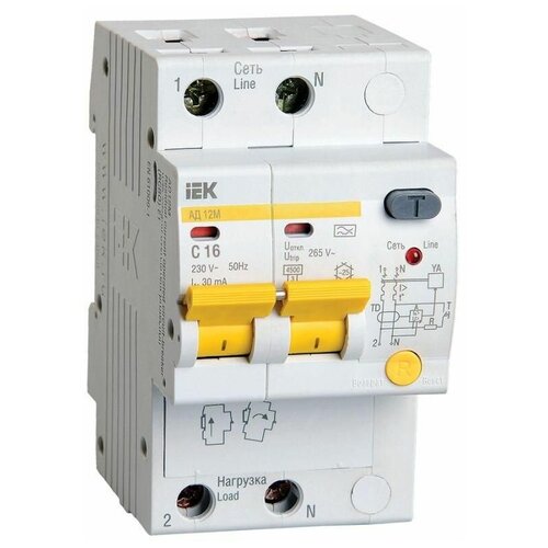 Выключатель автоматический дифференциального тока 2п C 16А 30мА тип A 4.5кА АД-12М IEK MAD12-2-016-C-030