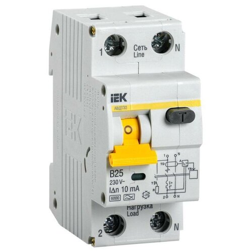 Выключатель автоматический дифференциального тока 2п (1P+N) B 25А 10мА тип A 6кА АВДТ-32 ИЭК