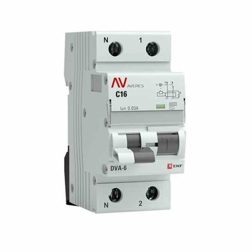 Дифференциальный автомат DVA-6 1P+N 16А (B) 30мА (A) 6кА EKF AVERES (арт. rcbo6-1pn-16B-30-a-av)