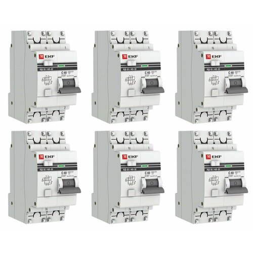 Дифференциальный автомат АД-32 1P+N 40А/30мА (хар. C, AC, электронный, защита 270В) 4,5кА EKF PROxima 6 штук