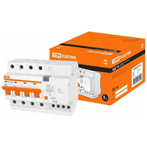 Дифференциальный автомат TDM ELECTRIC АД14 7 модулей 4П 100 мА C 4.5 кА 16 А 100 мА