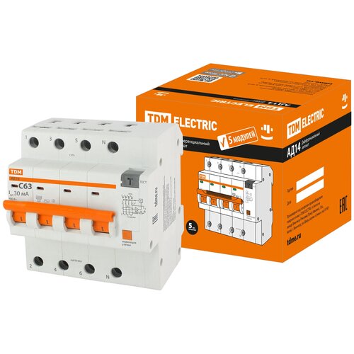 Дифференциальный автомат TDM ELECTRIC АД14 4П 30 мА C 4.5 кА AC 63 А 30 мА