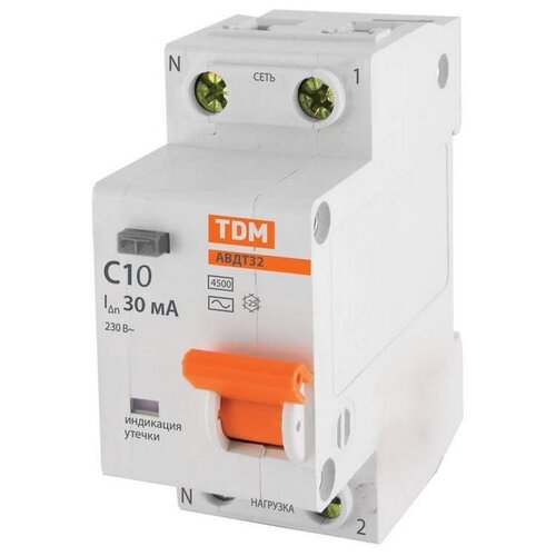 Дифференциальный автомат TDM ELECTRIC АВДТ 32 2П 30 мА C 4.5 кА AC электронный 10 А 30 мА