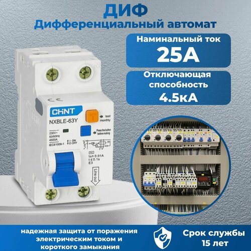 Дифференциальный автомат 25А ДИФ тип АС/С 4,5кА 30мА чинт CHINT
