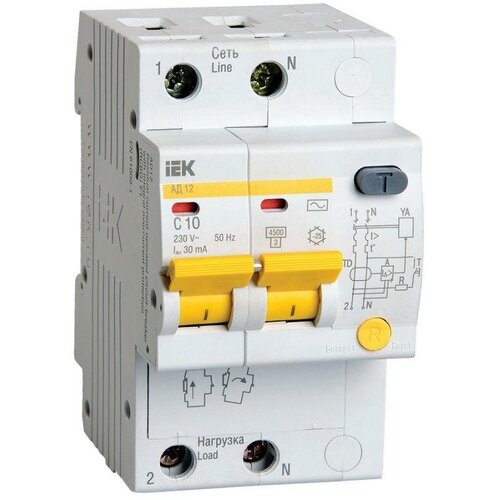 Выключатель автоматический дифференциального тока 2п C 10А 30мА тип AC 4.5кА АД-12 IEK MAD10-2-010-C-030