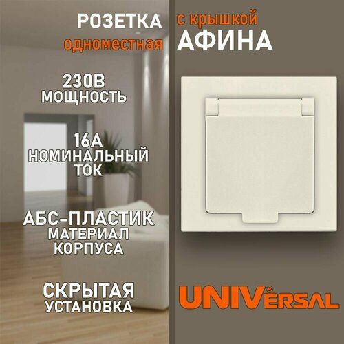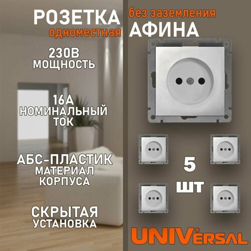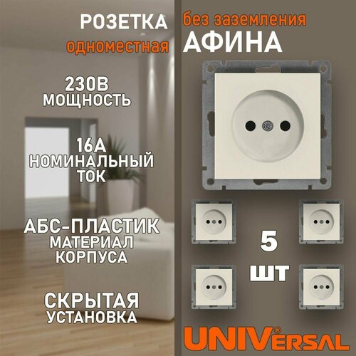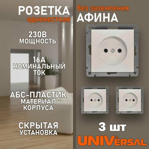 Розетка одноместная б/з Афина цвет жемчуг 3шт