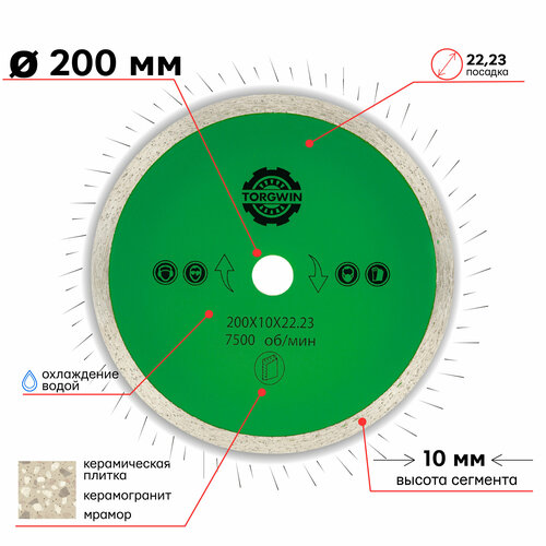 Диск алмазный сплошной 200 х 1,7 х 10 х 22,23 мм для гранита TORGWIN 106AG-TG20022KL