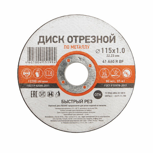 Подходит к большинству УШМ, имеющих стандартное посадочное отверстие (22,23 мм), во время установки необходимо руководствоваться стрелкой направления вращения диска. Изготовлен на бакелитовой основе (BF) с двумя слоями армированной стеклосетки, на которую нанесен шлифматериал (абразивное зерно из электрокерамического корунда (А) и современных вяжущих материалов). Отрезной круг отличается большими ресурсными показателями, точностью реза, высокой производительностью и низким уровнем шума. Диск использовать строго по назначению, а также соблюдать технику безопасности и использовать средства индивидуальной защиты.
