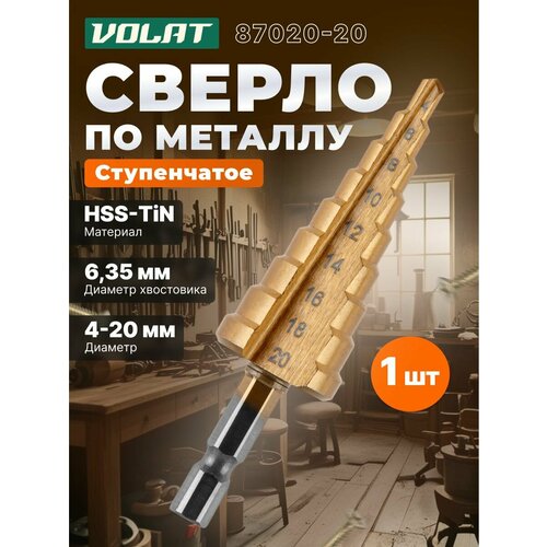 Сверло по металлу ступенчатое 4-20 мм волат HSS TiN (87020-20)