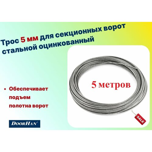 Трос 5 мм для секционных ворот стальной оцинкованный (5 метров), арт 25014-5 (DOORHAN)