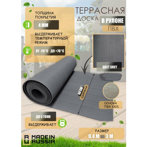 Доска Террасная 0,4 на 4 (В рулоне) (ПВХ) Серая