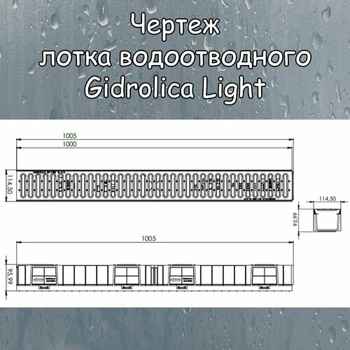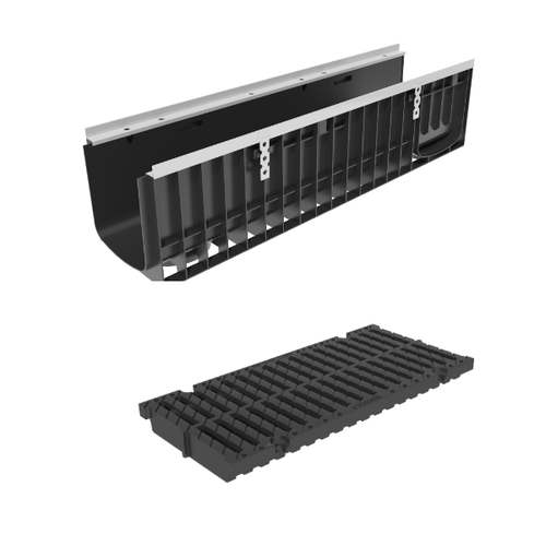 Комплект лоток водоотводный Gidrolica Light 1000х114х58 с решеткой пластиковой, класс А15, в упаковке 6 шт.
