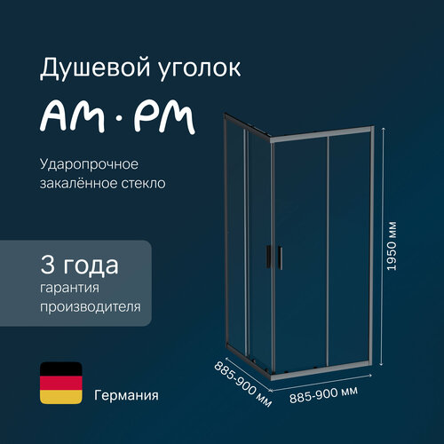 Душевой уголок AM.PM Gem 90x90 см, раздвижное открывание, профиль черный матовый, стекло прозрачное, без поддона