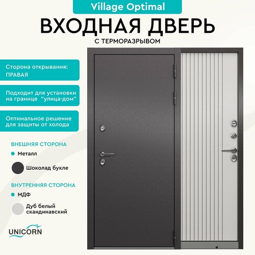 Дверь входная в дом с терморазрывом Unicorn Village Optimal 880х2050 правая, атмосферостойкое покрытие, три уплотнителя и три петли, замки 3-го класса
