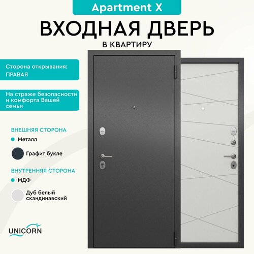 Дверь входная для квартиры Unicorn металлическая Apartment X 960х2050, открывание вправо, антивандальное покрытие, два уплотнителя, замки 4-го и 2-го класса