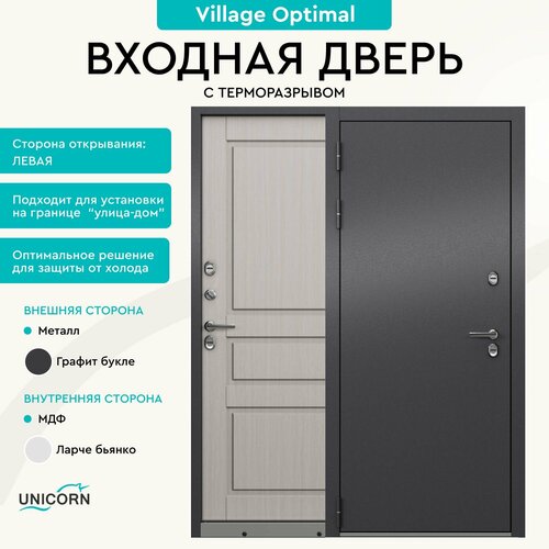 Дверь входная в дом с терморазрывом Unicorn Village Optimal 880х2050 левая, атмосферостойкое покрытие, три уплотнителя и три петли, замки 3-го класса