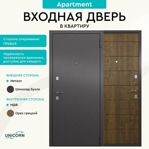 Дверь входная для квартиры Unicorn металлическая Apartment 960х2050, открывание вправо, антивандальное покрытие, два уплотнителя, замки 4-го и 2-го класса
